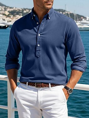 Homens Saia camisa de botão Camisa Oxford Resistente a rugas Tecido Casamento Trabalho Azul Claro Branco Azul Escuro Manga Longa Colarinho Verão Primavera Roupa