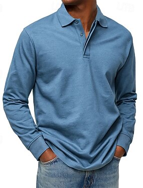 Homens Pólo Camisas Polo Casual Rua Lapela Manga Longa Básico Moderno Tecido Botões Primavera Outono Normal Azul Preto Branco Verde Claro Vermelho Azul Marinha Pólo