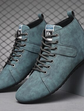 Tênis masculino estiloso de cano alto cinza – calçado macio em camurça sintética com cadarço, ideal para uso casual, estilo urbano e conforto no dia a dia.