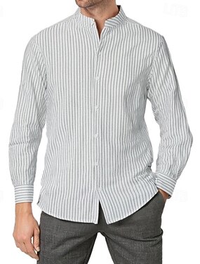Homens Camisa Social camisa de verão Camisa casual camisa de praia camisa de botão Preto Branco Caqui Azul Claro Manga Longa Listra Faixa Férias Havaiana Roupa Algodão E Linho Moda Casual Confortável