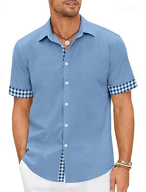 Homens Camisa Social camisa de verão Camisa casual camisa de praia camisa de botão Cinzento Manga Curta Xadrez Lapela Férias Havaiana Roupa Poliéster Moda Casual Confortável