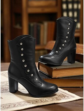 Botas femininas verdes até o joelho com detalhe de botão – calçado de salto elegante e vintage para desfiles, festividades e comemorações do Dia de São Patrício.