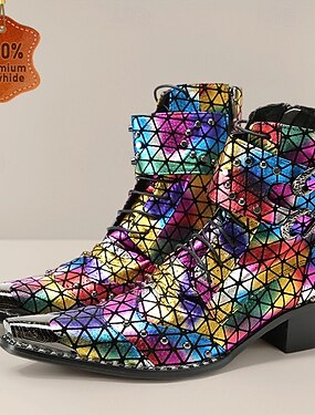 Botas masculinas com padrão de arco-íris e textura refletiva – sapatos estilosos e coloridos para festivais, festas e entusiastas da moda