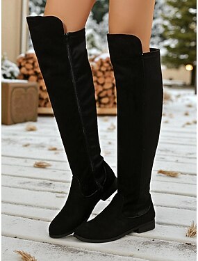 botas femininas de couro sintético acima do joelho com salto baixo - elegantes e estilosas para a moda outono e inverno