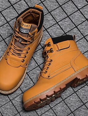 Botas de trabalho masculinas de cano alto em couro sintético | design durável com tira ajustável para uso pesado