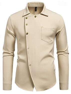 Homens Camisa Social Saia Tecido Formal Casamento Vinho Azul Verde Caqui Manga Longa Aberto para a Lateral Verão Primavera Roupa Patchwork