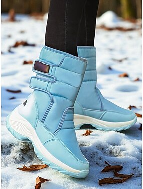botas femininas impermeáveis com tira de velcro, botas de neve de inverno isoladas e confortáveis para clima com neve, esportes ao ar livre e caminhadas