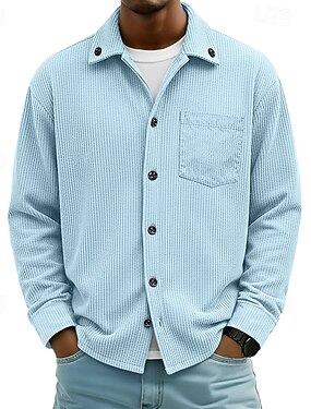 Homens Camisa Social Camisa casual Camisa Waffle Henley camisa de botão Preto Branco Verde Claro Rosa Azul Manga Longa Tecido Henley Diário Para Noite Roupa Moda Roupa de rua Moderno Casual