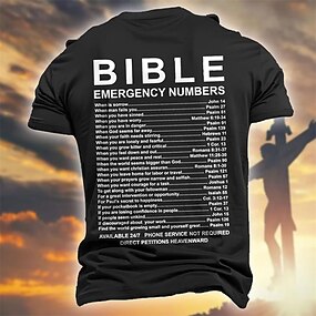 Camiseta Bíblia Cristã Números de Emergência Impressão Costas T-Shirt Versículo de Escritura Religiosa Gráfica Tee para Homens Camisa Inspiracional Baseada na Fé Presente da Igreja