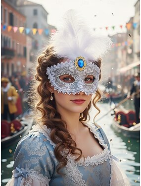 Máscara de Carnaval de Penas Verdes para Mulheres - Acessório de Fantasia de Luxo Barroco Embelido com Cristais para o Festival de Veneza Mardi Gras e Festas à Fantasia