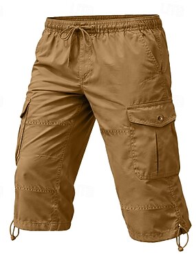 Homens Calças de carga Bermuda Cargo Calção Shorts casuais Bolsos Cintura elástica Tecido Cor Única Comprimento da panturrilha Casual Ao ar livre Streetwear Moda Roupa de rua Preto Amarelo Sem
