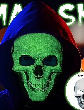 Terror Assustador Rosto de fantasma Máscara Máscara LED Gritar Brilha no Escuro Led acende Cara Completa Adulto Homens Mulheres Unisexo Dia Das Bruxas Carnaval Festa Espetáculo Mascarilha Fantasias