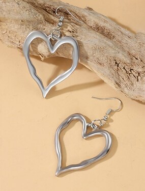 Brincos de coração femininos, em liga metálica, diversos estilos de coração, design delicado e romântico, ideais para mulheres, perfeitos para o Dia dos Namorados, casamentos e ocasiões românticas.