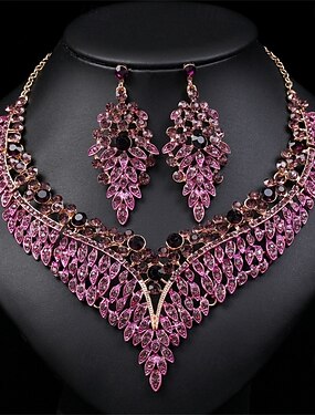 Conjunto de Jóias 2 Roxo Liga 1 Colar Brincos Mulheres Elegante Vintage Moda Estilo vintage Clássico Conjunto de jóias Para Casamento Festa Convidado do casamento