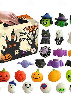 24/48 peças de brinquedos mochi de Halloween, lembrancinhas de festa de Halloween para crianças, brinquedos de Halloween para doces ou travessuras a granel, guloseimas de Halloween sem doces, sacolas