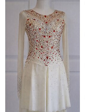 Vestidos para Patinação Artística Mulheres Patinação no Gelo Vestidos Branco Patchwork Sem costas Elasticidade Alta Treino Competição Roupa para Patinação Clássico Cristal / Strass Manga Longa