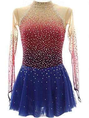 Vestidos para Patinação Artística Mulheres Para Meninas Patinação no Gelo Vestidos Rosa claro Azul Roxo Com Stretch Treino Competição Roupa para Patinação Térmico / Quente Cristal / Strass Manga Longa
