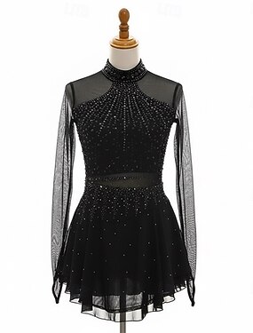 Vestidos para Patinação Artística Mulheres Para Meninas Patinação no Gelo Vestidos Preto Patchwork Thumbhole Elastano Com Transparência Elasticidade Alta Treino Competição Roupa para Patinação