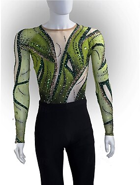 Top de patinação artística Homens Para Meninos Patinação no Gelo Tops Verde Patchwork Com Transparência Elastano Elasticidade Alta Treino Competição Roupa para Patinação Clássico Cristal / Strass