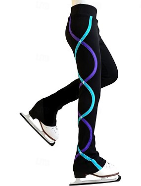 Calças de patinação artística femininas e infantis, pretas, rosas e azuis, elásticas, para treino e competição, térmicas e quentes, com cristais/strass.