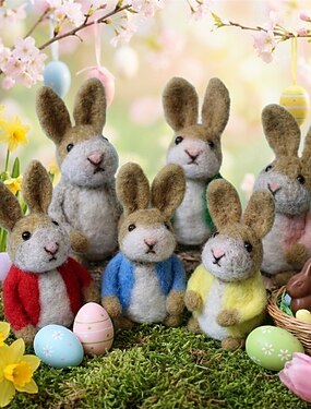 Kit de Páscoa com 3 coelhinhos realistas de feltro agulhado, miniaturas de coelho de lã feitas à mão, um presente macio e realista para crianças e bebês, perfeito para a Páscoa. Decoração para casa