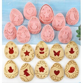 Conjunto de cortadores de biscoito de Páscoa, 10 peças, molde para biscoitos, conjunto de cortadores de biscoito em formato de ovos de Páscoa com carimbos, utensílios de cozinha, carimbos de plástico