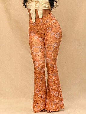 Retro Vintage Boho Anos 70 Calça boca de sino leggings flare Calças boca de sino Hippie Discoteca Cintura Alta Tribal Fantasia Mulheres Dia Das Bruxas Carnaval Férias Festival de Música Festival
