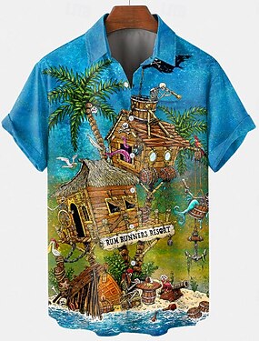 Homens Caveiras Coqueiro Trajes da Noite das Bruxas Camisa Social camisa de botão Camisa de grife Manga Curta Estilo gótico escuro Feriado Streetwear Verão Primavera Aberto para a Lateral Impressão