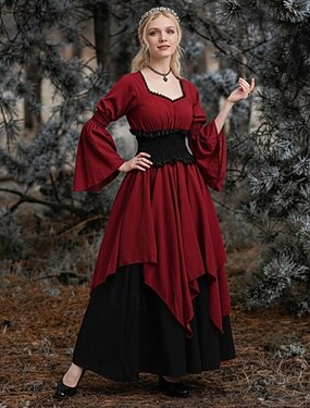 Retro Vintage Vitoriano Medieval Vestidos Overdress Manga Alargamento manga babado manga de trompete Senhora Viking irlandês Elfo Decote Quadrado Fantasia Mulheres Dia Das Bruxas Mascarilha Casual