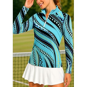 Mulheres Gradiente Moletom Polo Tops Camisa Camisa Esportiva Manga Longa Imprimir Quarter Zip Pullover UPF50+ Resistente a UV Proteção UV Elástico Respirável Voleibal Tênis Golfe Colarinho Chinês