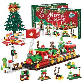 Caixa de presente com calendário do advento e blocos de construção de Natal, caixa surpresa faça você mesmo com contagem regressiva de 24 dias e blocos de árvore de Natal, brinquedos educativos de