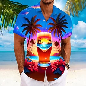 Homens Coqueiro Natureza e Paisagem Plantas Tropicais Camisa havaiana camisa de botão Camiseta Aloha Manga Curta Havaiana Casual Férias Verão Primavera Aberto para a Lateral Impressão 3D camisas de