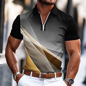 Homens Geométrico Linha Camisas Polo com zíper Manga Curta Camisas polo Camisas de colarinho Business casual O negócio Roupa Esportiva Vestir para trabalhar Roupa Diária Impressão 3D Verão Preto