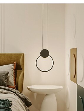2 pçs 20cm pingente de luz led design círculo luz de cabeceira acabamentos pintados de alumínio moldura branca preta para entrada do quarto sala de jantar moderna 110-120v 220-240v 10w