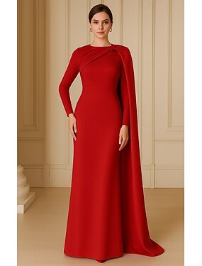 Tubinho Longo Vestido de baile com capa Vestidos de noite Vestido formal Elegante Sedoso Manga Longa Assimétrico Casamento Formal Crepe Esticado com Pregas