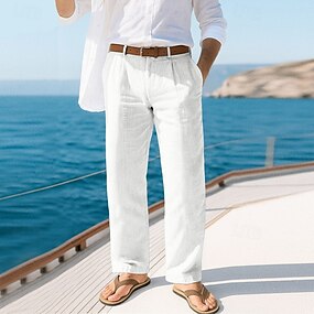 Homens Calças de linho Calças Calça verão Calças largas Bolsos Perna reta Tecido Conforto Respirável Comprimento total Diário Praia Feriado Moda Estilo Clássico Azul Preto Sem Elasticidade