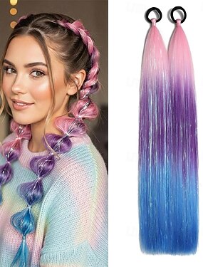 2 extensões de rabo de cavalo sintéticas coloridas com efeito bolha, extensões de cabelo trançado leves de 60 cm, acessórios para festivais e raves para meninas que querem um cabelo incrível.