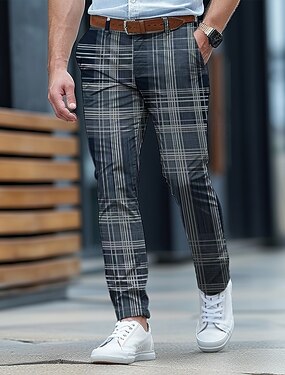 Homens Xadrez Cores Variadas Estampa Geométrica Social Calças Cintura Média Casual Vintage retrô Ao ar livre Férias Streetwear Com bolsos Corte Justo Frente plana Verão Primavera Outono Impressão 3D