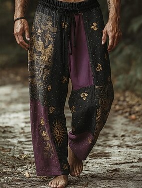 Homens Estampa Geométrica Étnico Calças Calças largas Calça casual Cintura Média Boho Vintage retrô Casa Ao ar livre Férias Cintura elástica com cordão Calças de linho com bolsos Verão Primavera