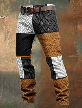Homens Geométrica Bloco de cor Retalhos Calças Social Calças de Terno Cintura Média Casual Ao ar livre Férias Calças Slim Fit com Bolsos Primavera Outono Impressão 3D Azul Marron Verde