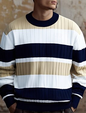 Homens Pulôver suéter Suéter de malha Estriado Tricotar Tops regulares Tricotado Tecido Gola Redonda Moda Básico Férias Roupa Diária Roupa Outono Inverno Preto Branco S M L