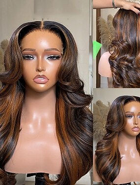 Cabelo brasileiro cru remy ondulado com mechas loiras acinzentadas sem cola 5x5 fechamento de renda sem cola perucas coloridas 13x4 peruca frontal de renda pré-arrancada para mulheres