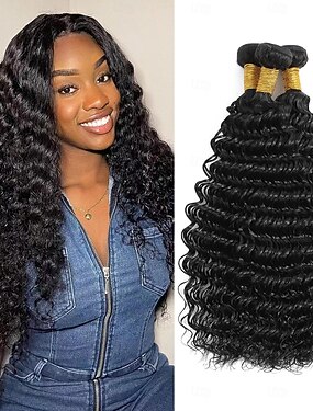Cabelo humano brasileiro, 3 pacotes, ondas profundas, cabelo humano Remy, trama de 12 a 30 polegadas, 300g
