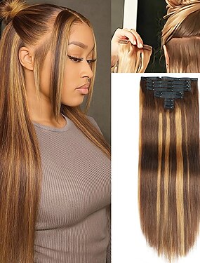 Com Presilha Extensões de cabelo Cabelo Humano 8pçs Pacote Liso Cor natural Extensões de cabelo
