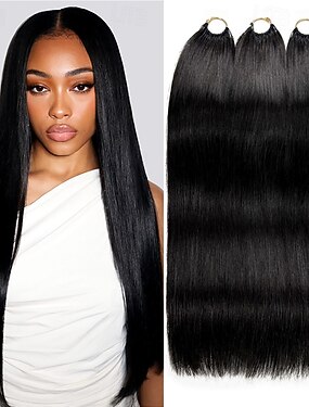 Cabelo ombré para tranças, pré-esticado, 3 pacotes de 66 cm (26 polegadas), fácil de modelar com água quente, textura lisa yaki, ideal para twists (26 polegadas, vermelho + azul + branco)