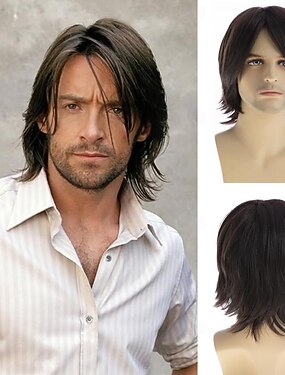 Peruca masculina curta preta em camadas curtas traje de cosplay natural halloween natal peruca de substituição sintética resistente ao calor
