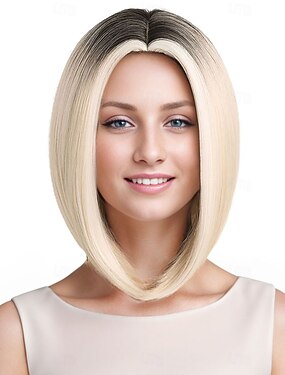 Perucas sintéticas Kinky Liso Reta natural Parte do meio Partida Profunda Fabrico à Máquina Peruca 12 polegadas A1 Cabelo Sintético Mulheres Clássico Confortável Cores Gradiente Loiro
