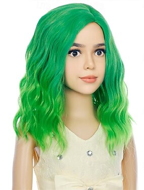 Perucas Verdes Peruca Verde Curta e Ondulada para Meninas Fantasia de Festa Perucas de Cabelo Sintético