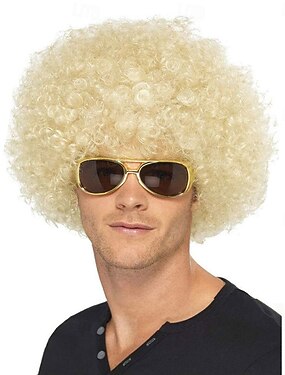 Peruca Afro Disco Sintética Fofa Anos 70 para Fantasia de Homem Peruca de Halloween Loira