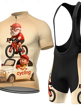 Homens Camisa para Ciclismo Camisa com Bermuda Bretelle Manga Curta Ciclismo de Montanha Ciclismo de Estrada Verão Primavera Café Desenho Animado Geométrica Vintage Moto Filtro Solar Resistente a UV
